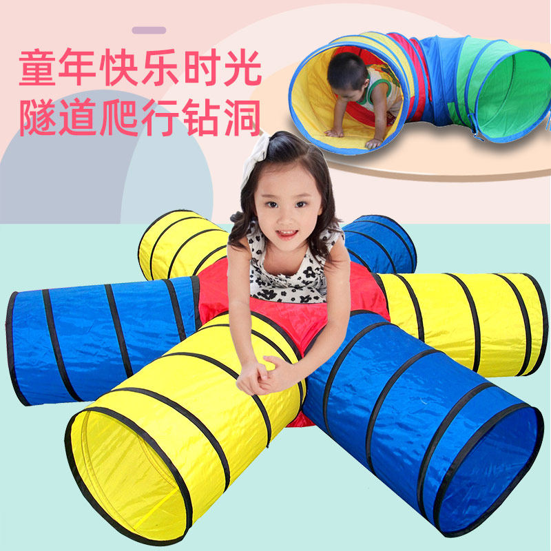 Kindergarten sensory training equipment drilling hole crawling hole three-color four-color sunshine tunnel physical exercise baby toys