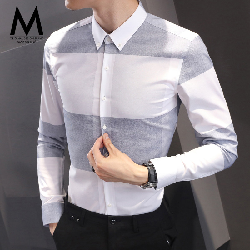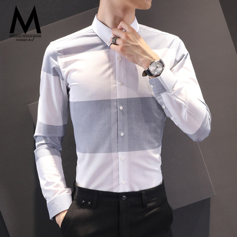 2021 Winter New Lining Men's Long Sleeve Youth Sashimi Business Casual for Ironing Shirt Han Edition Fashion Trends
