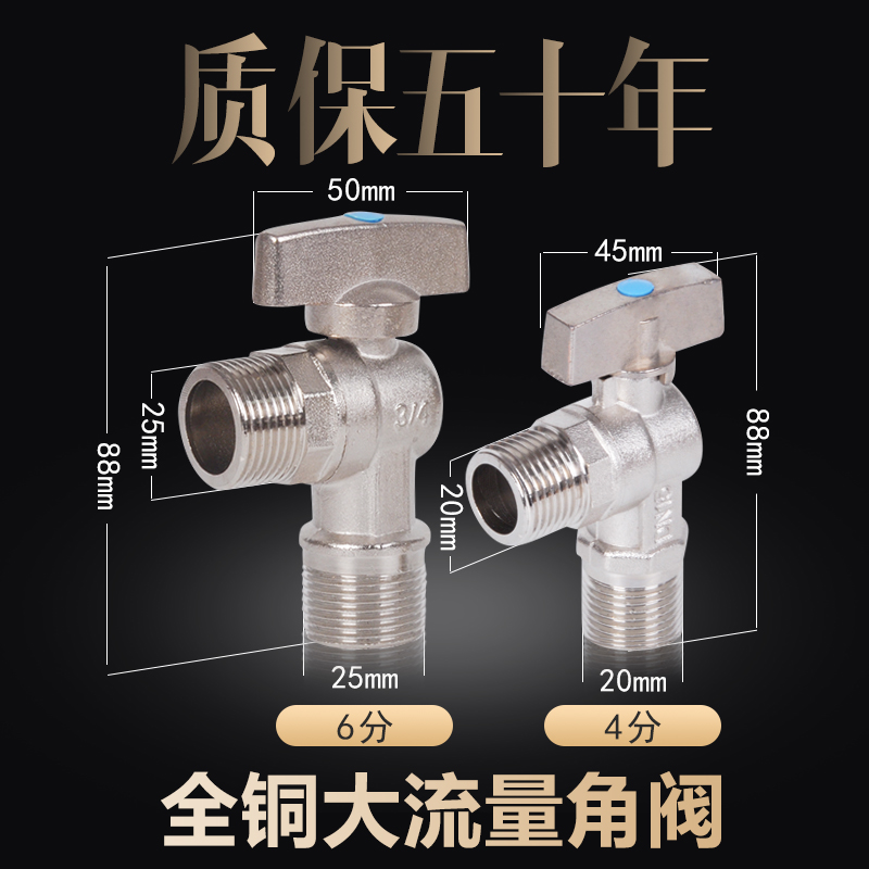 4 points 6 minutes DN15 DN20 large flow gas water heater wall hanging furnace hot and cold water full diameter copper ball core angle valve
