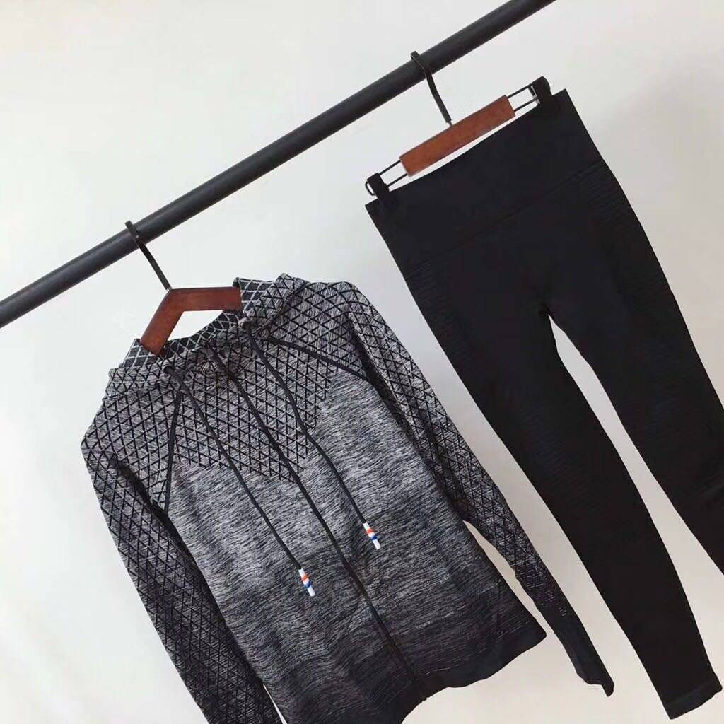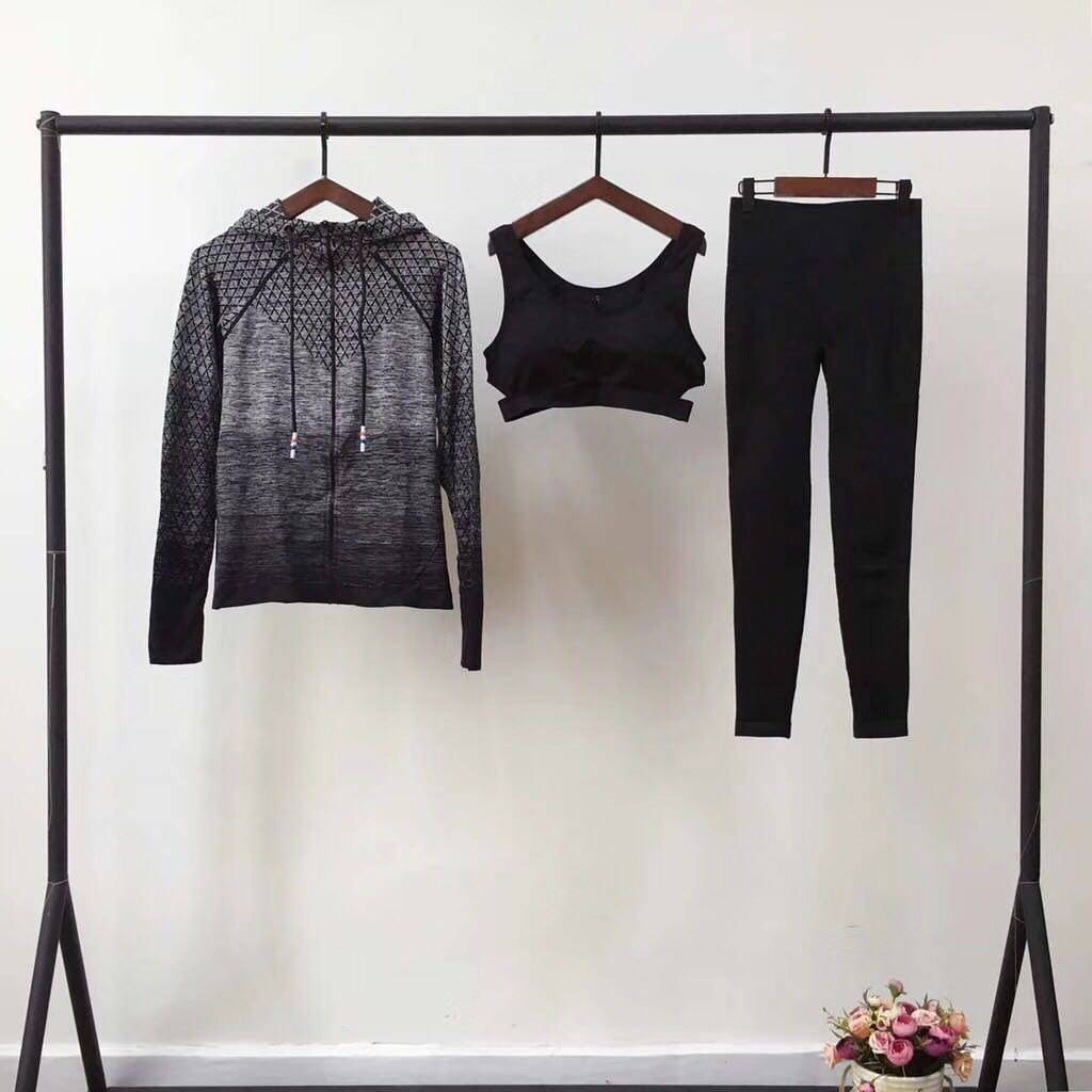 British single wave Lingge long-sleeved sports three-piece suit professional quick-drying fabric seamless elastic good yoga fitness clothes