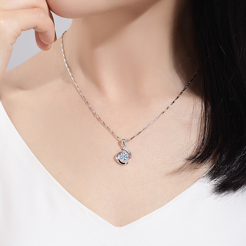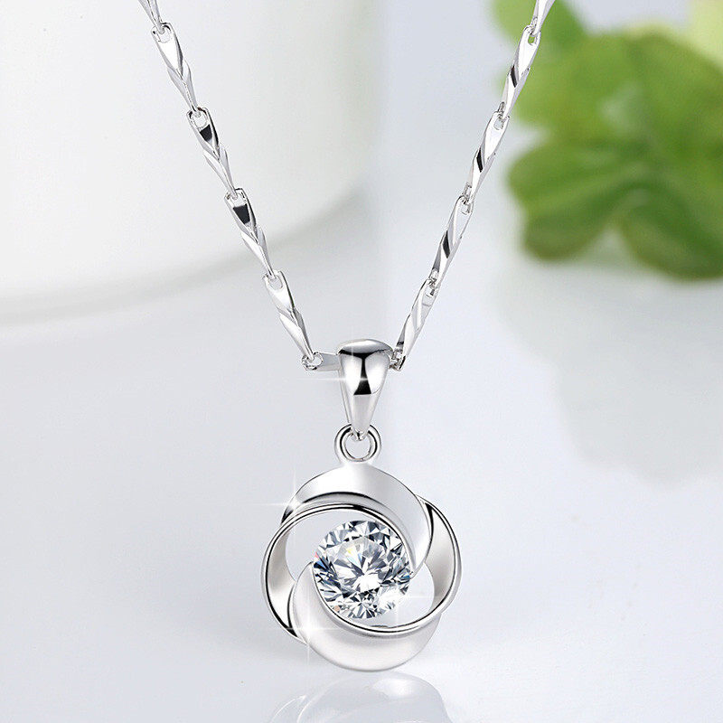 Pure silver necklace woman S999 lock bones Japan-ROK version 4-leaf grass Short-style pendant to give girlfriend the gift lettering on the seventh New Year's Eve