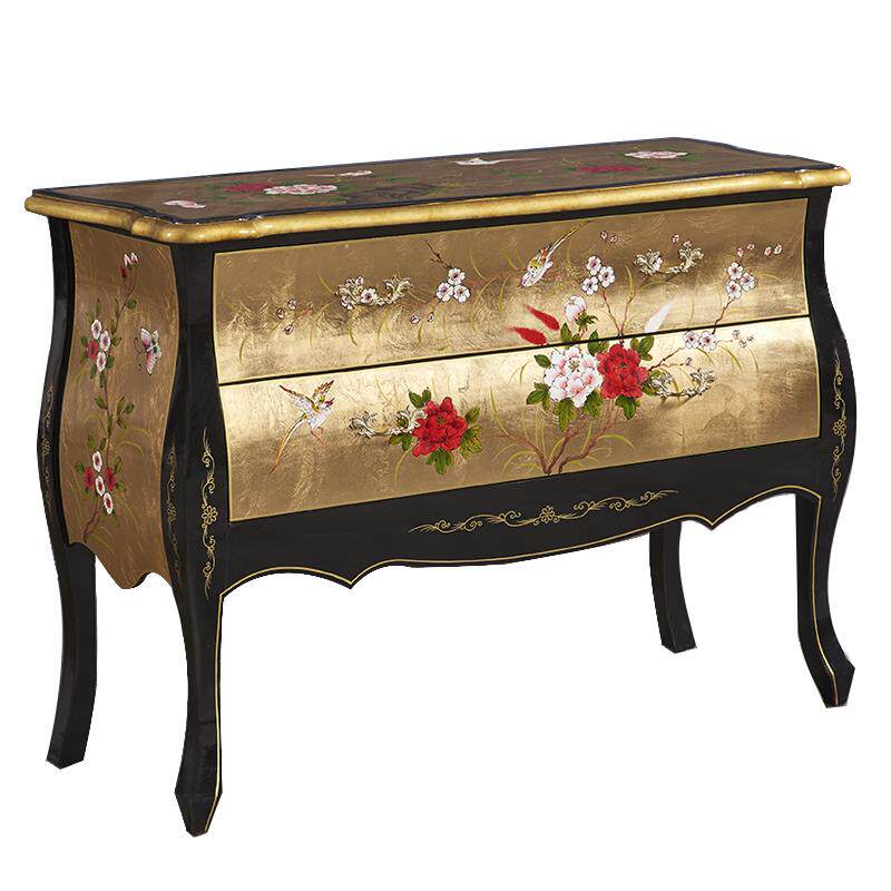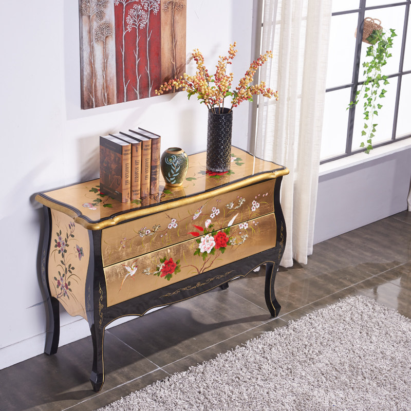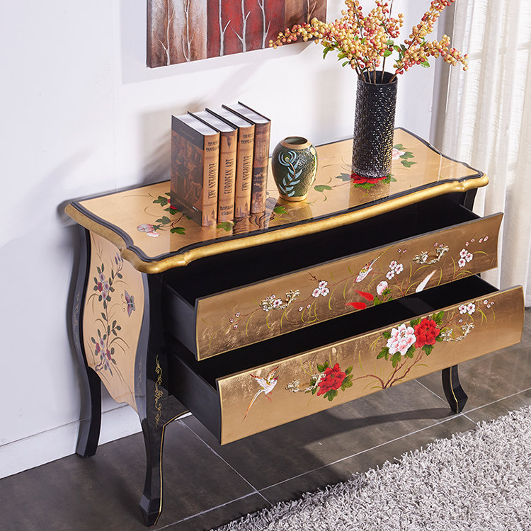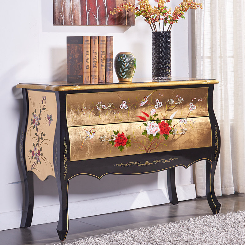 American retro painted two-drawer cabinet entrance cabinet living room solid wood new Chinese gold leaf dining cabinet locker