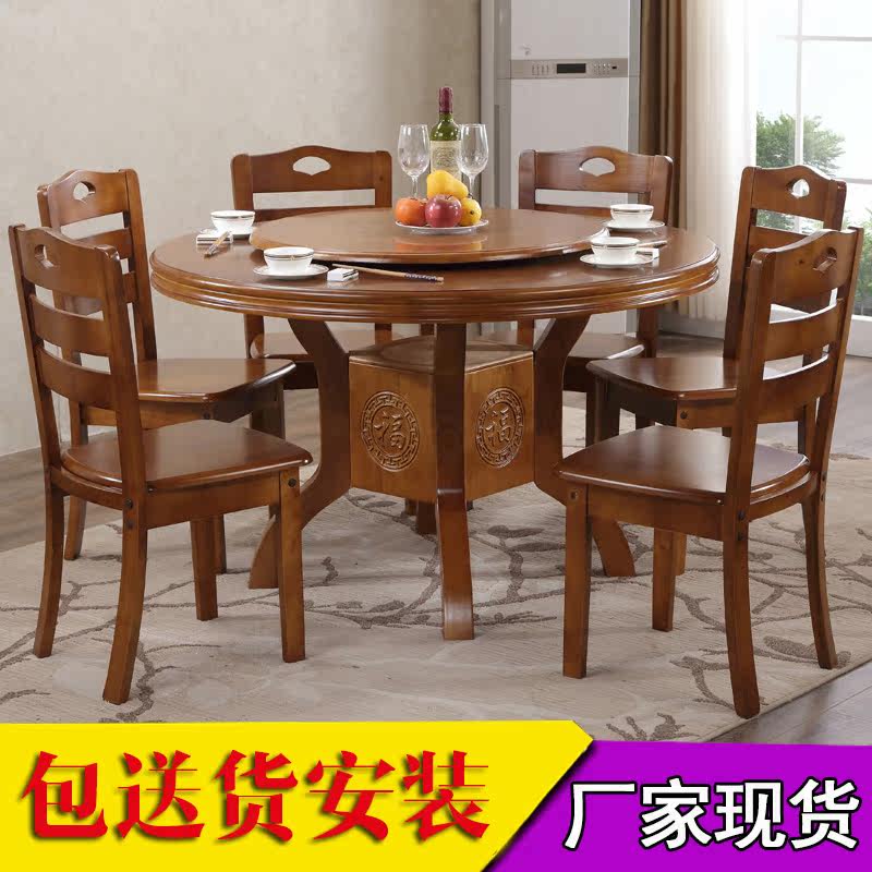 Solid wood dining table and chair combination hotel 2 meters with turntable round table Chinese oak household round dining table for 6 10 people