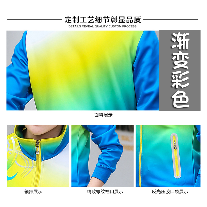 Lovers Sports Suit Spring Autumn Student Group Competition Collar Award for men and women Running to the Jiamusi Square to serve the print