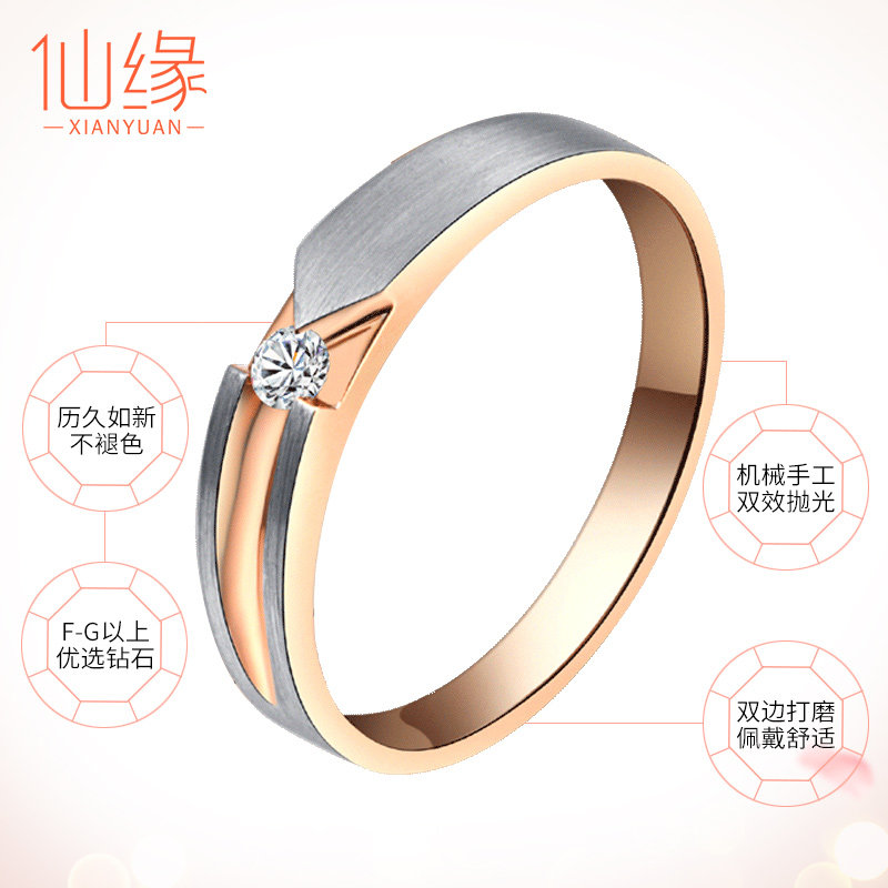 Color gold on the ring diamond ring 18K white gold rose gold wedding ring couple married engagement pair