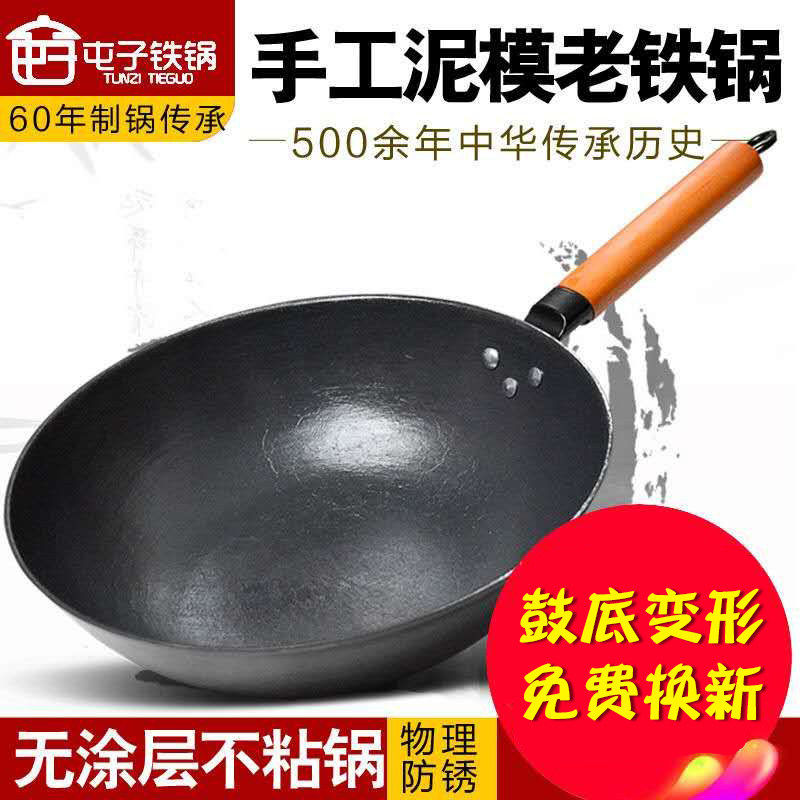 Cast iron frying pan household non-stick without coating induction cookware gas stove suitable flat bottom fried dish traditional old-style raw iron pan