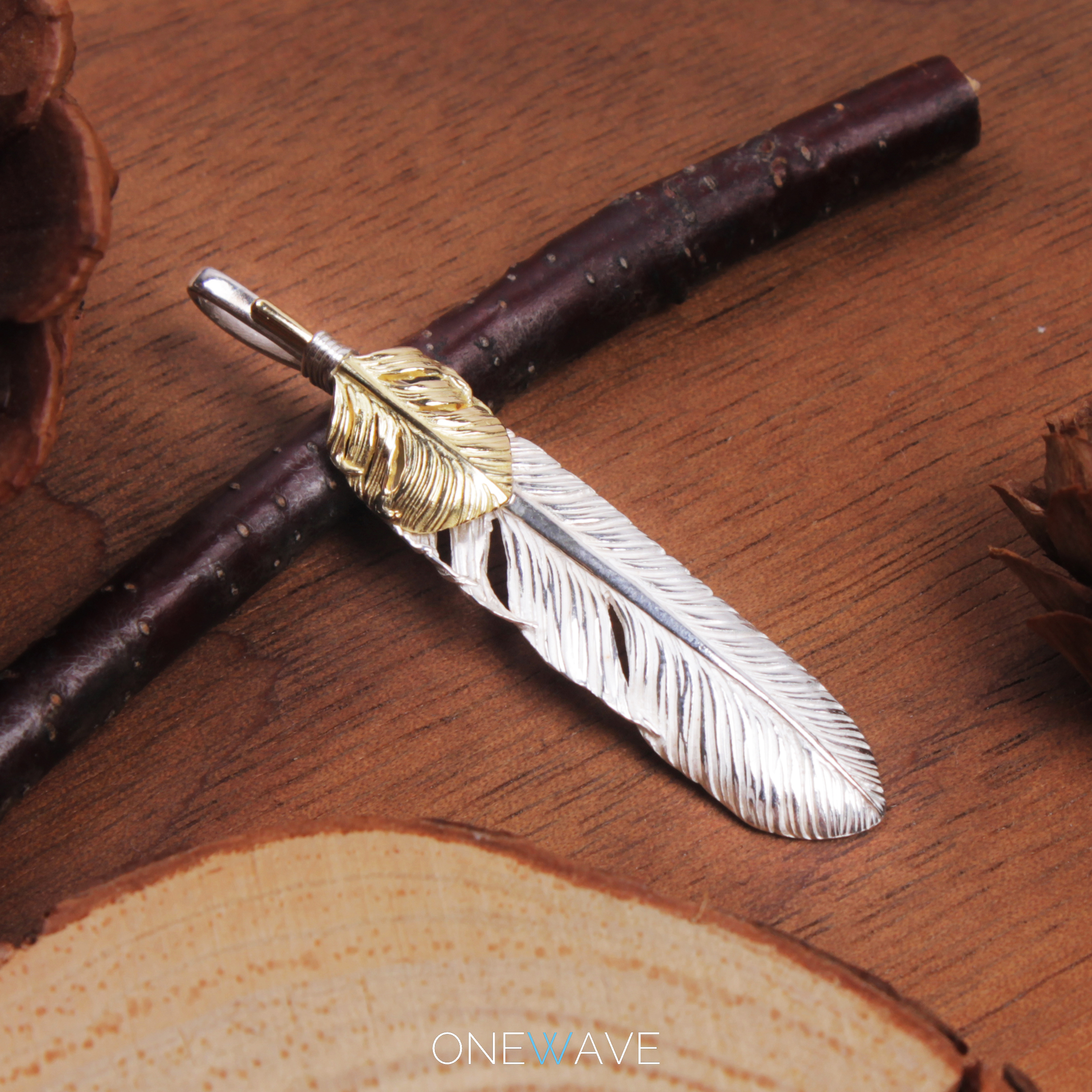 (on the way) KEN KIKUCHI KIKUJI KIJU Golden Bay Feather Small Upper Gold Necklace Pendant