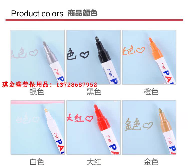 Zhongbai paint pen color graffiti pen waterproof non-fading industrial white marker pen tire pen glossy pen