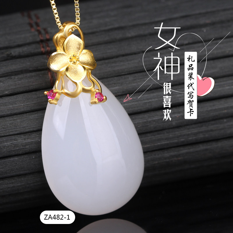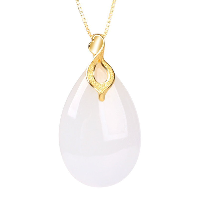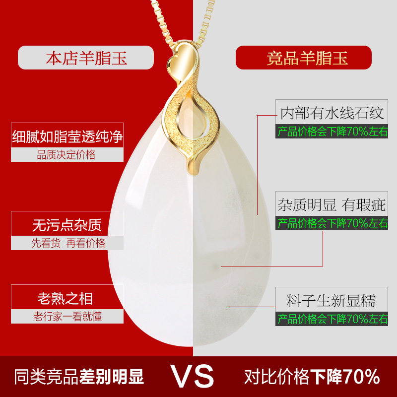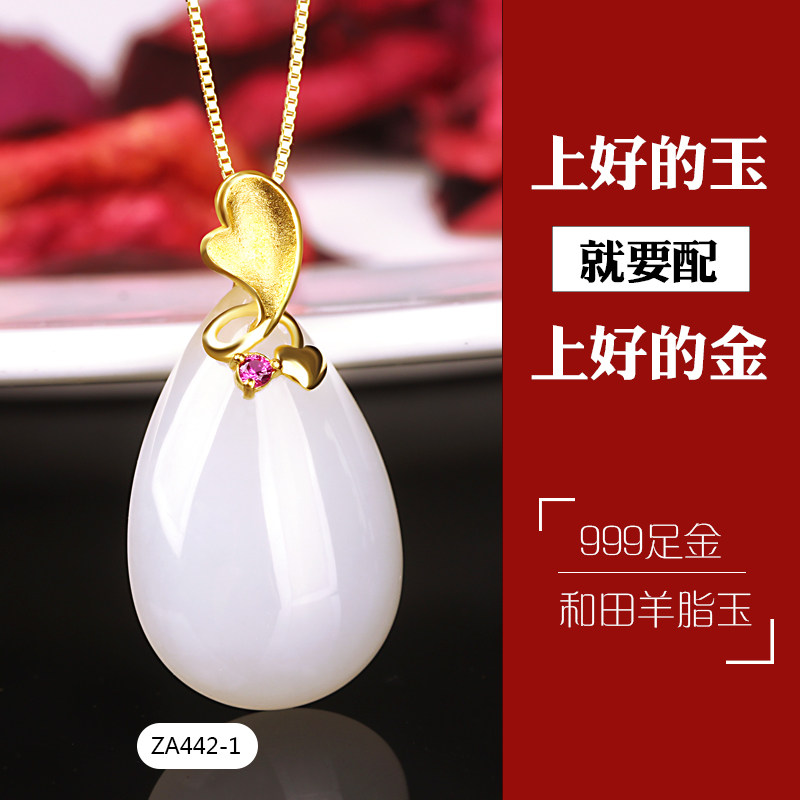 Yingyutang Hetian jade pendant female sheep jade water drop gold 999 gold 3D hard gold jade pendant