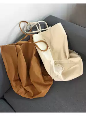 (Full real shot)Extra large canvas handbag Simple literary large shoulder bag open cloth bag environmental protection shopping bag female