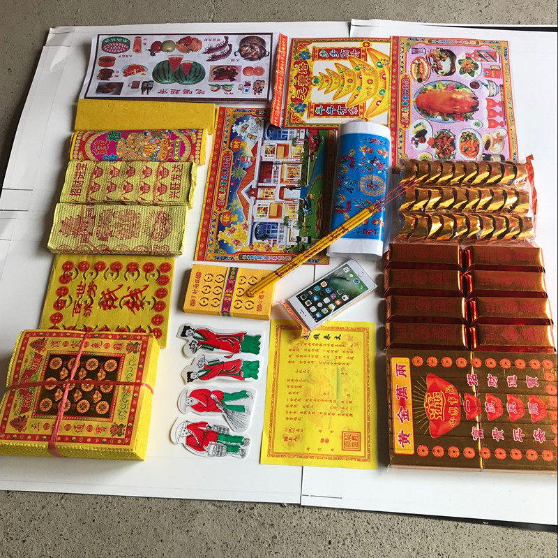 Burning paper sacrificial supplies complete with matching suit paper money yellow paper foaming paper Tomb Sweeping Day of the Tomb Sweeping Tomb
