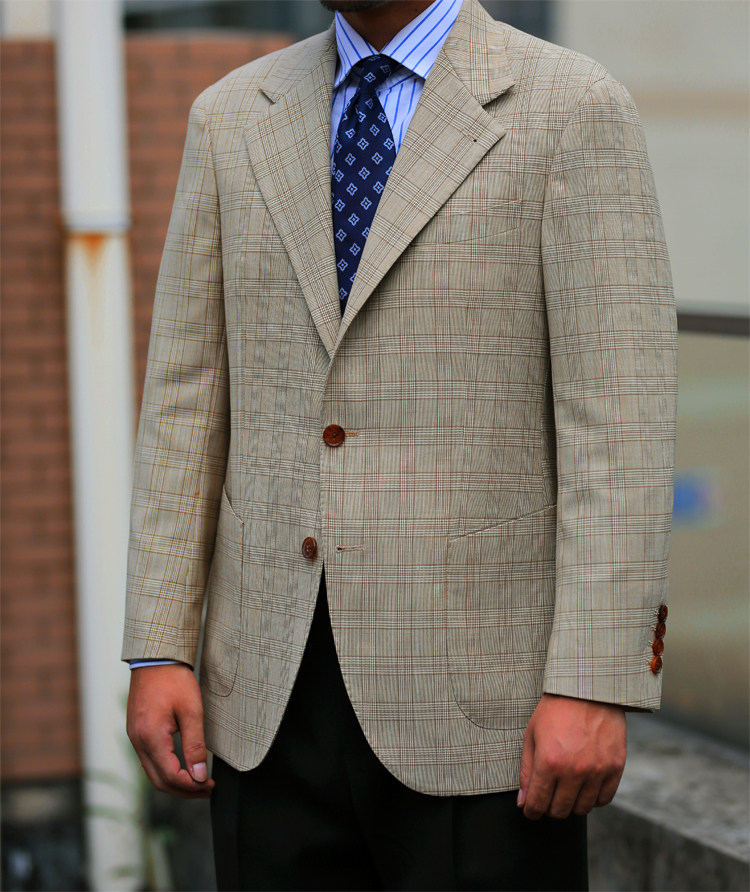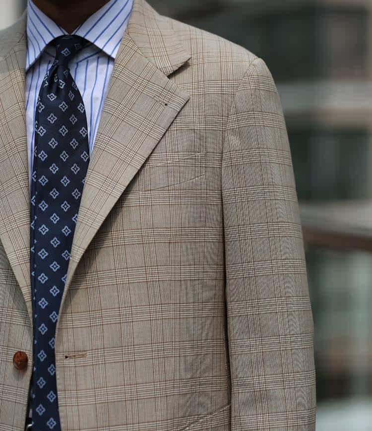 Autumn-imported fabric 100 %WOOL Half linen lining yellow Prince lattice single row Buttoned Suit 3 buckle 2