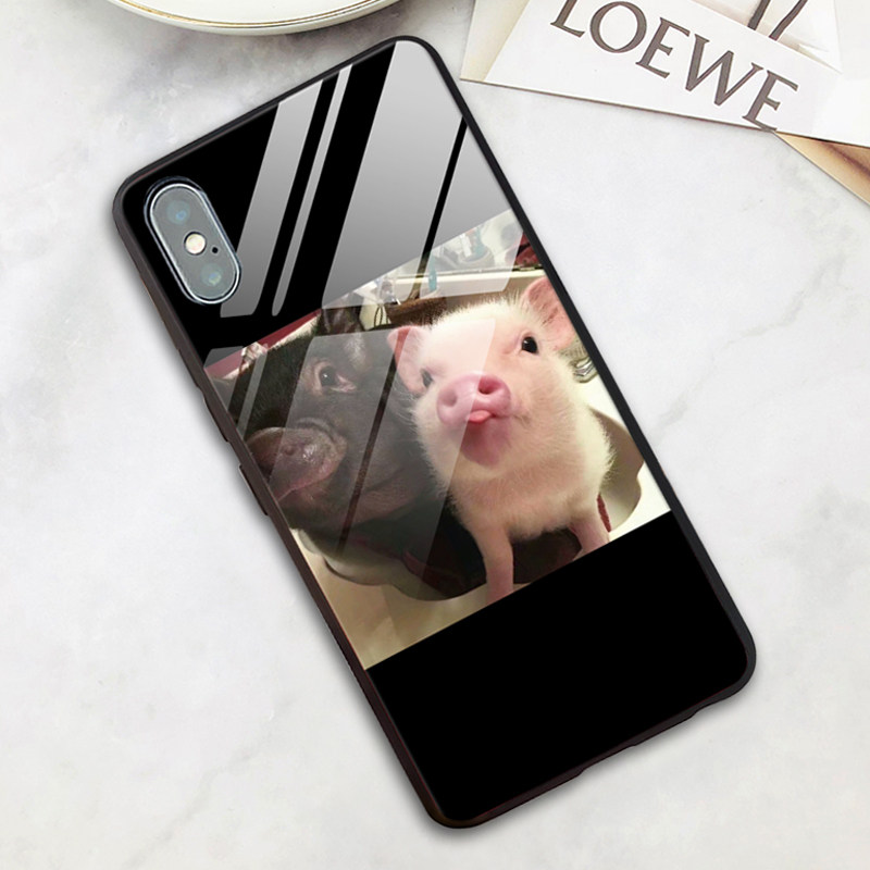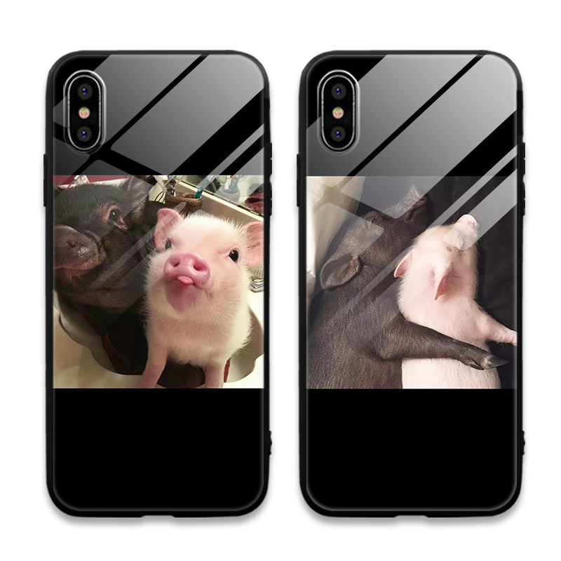 Couple mobile phone shell Apple X piglet iphone11 13 glass 6s mesh red 7plus Apple 12pro 12pro 12mini Men xs max female section XR funny