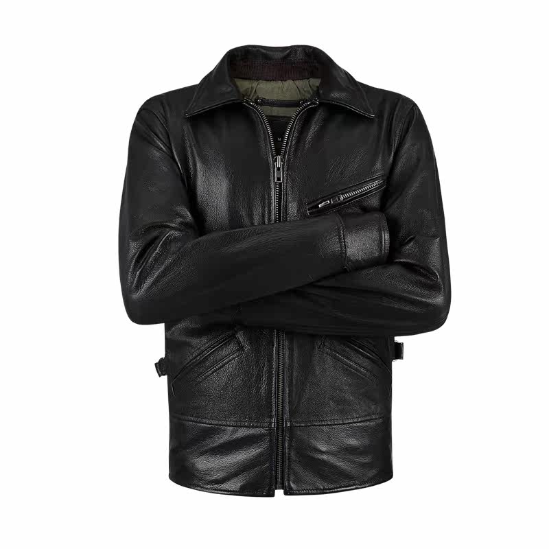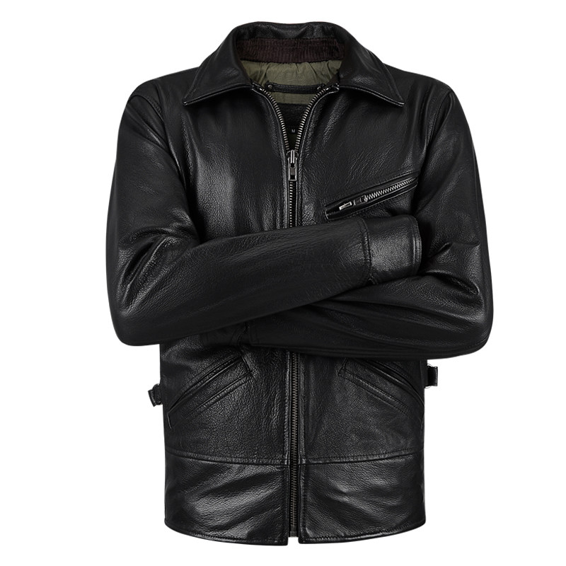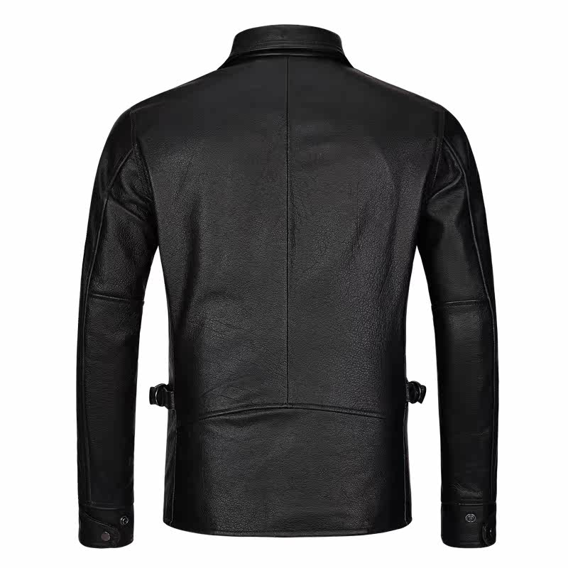 Fall New Head Layer Cow Leather Casual Leather Jacket Man Style Short stand Bull Leather Leather Leather Coat Machine Racing Suit