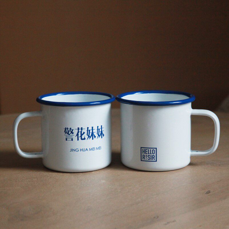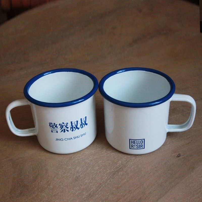 Police Themed Office Nostalgic Teacup Vintage TeaPoon Imitation Enamel Cup Vintage Water Cup Ceramic Enamel Color Cup
