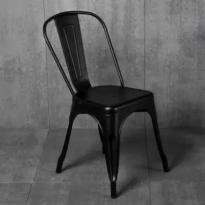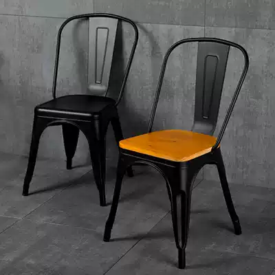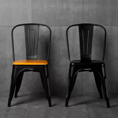 Industrial style chair Household wrought iron dining chair Hotel dining room black metal economical single casual backrest chair stool