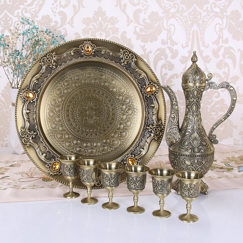 Wine Furniture Set White Wine High-end Russian Bronze Wine Pot Wine Cup Craft Gift Hem Accessories Furnishing Classic Wine Glass Pendulum Home