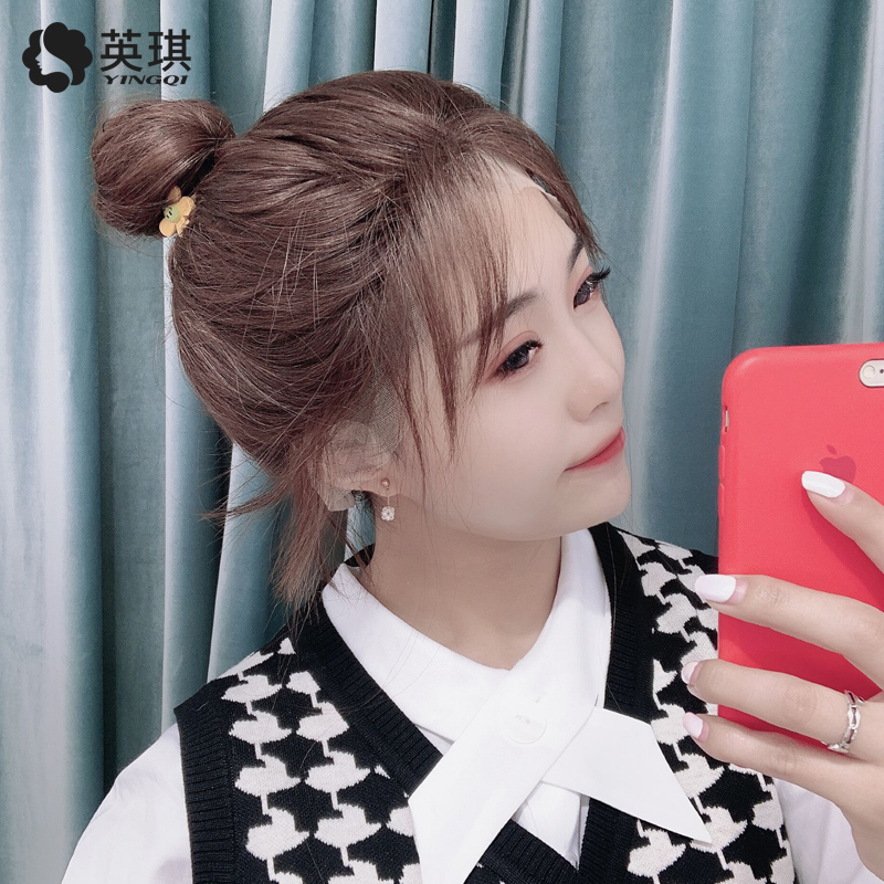 Yingqi wig Female long hair summer natural full head real hair Invisible lace in the middle of the round face net red head cover type