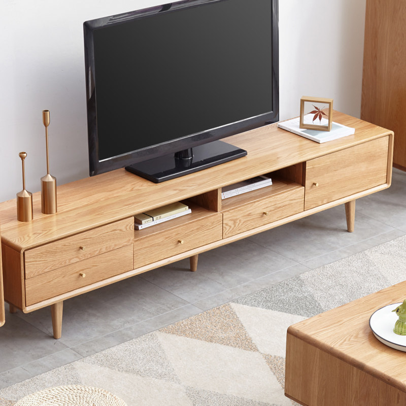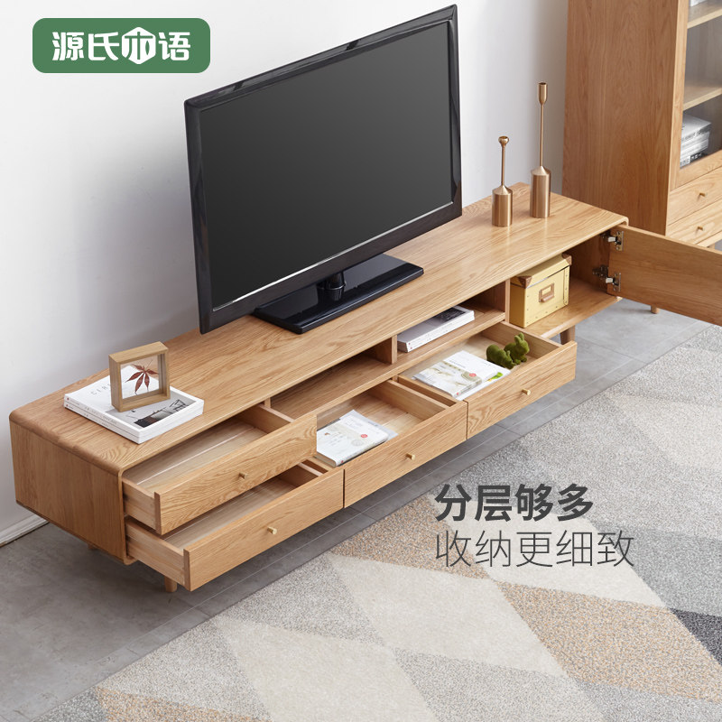 Genji wood language Full solid wood TV cabinet Modern simple small apartment living room storage cabinet Nordic oak environmental protection cabinet