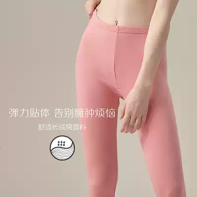 Red bean women's sanitary pants Cotton inner pants brushed mid-waist thin autumn and winter slim-fitting single-piece single-piece pants women's warm pants