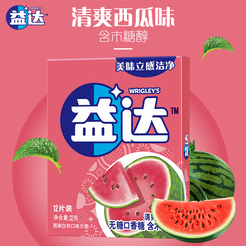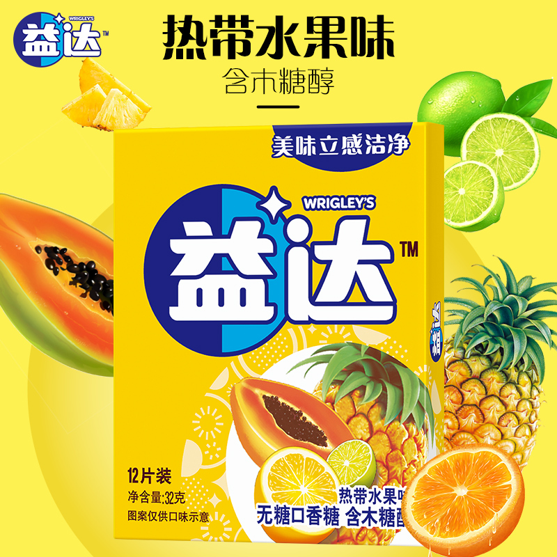 Yida gum 12 tablet 32g*10 pack of sugar-free xylitol watermelon tropical fruit mint flavor fresh breath