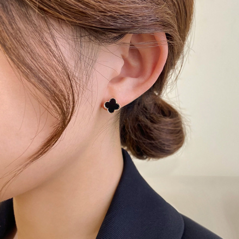 Korean rose gold 925 sterling silver four-leaf clover earrings simple temperament earrings do not fade hypoallergenic ear jewelry women
