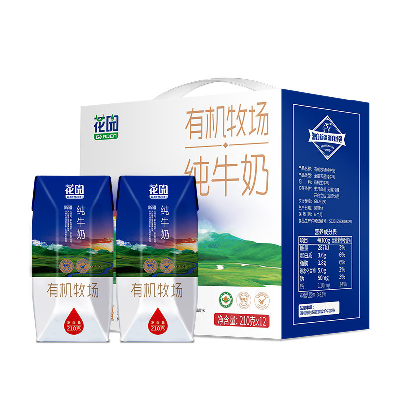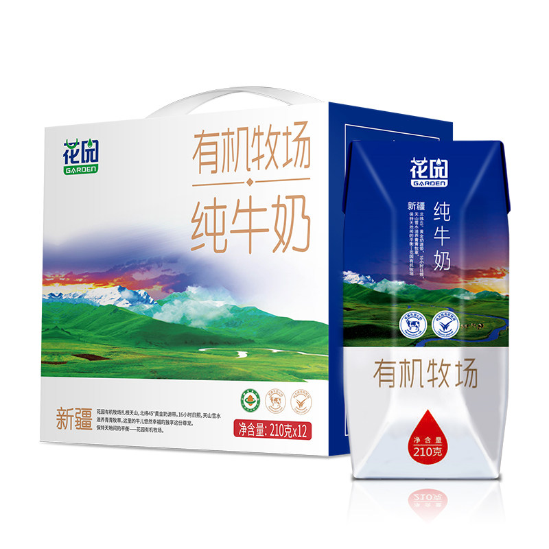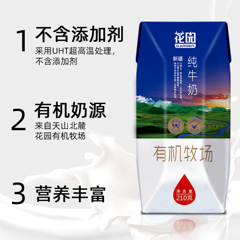 Xinjiang Garden Organic Pasture Pure Milk 210g * 12 Boxed Whole Box Children Breakfast Full Fat Raw Cow's Milk Milk