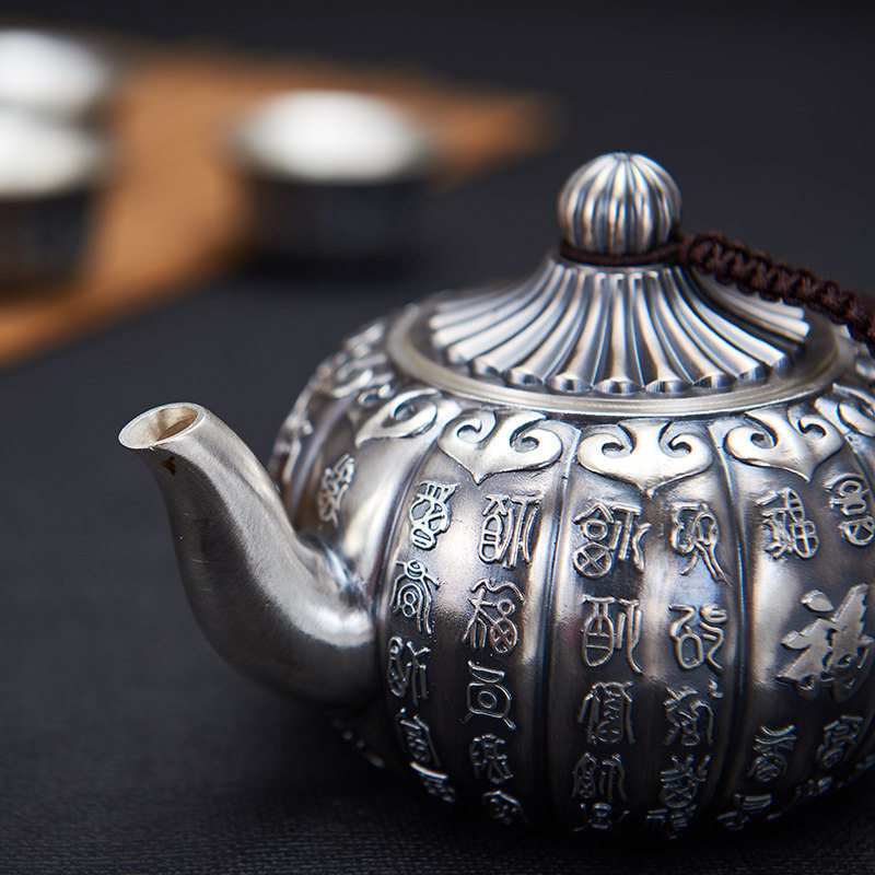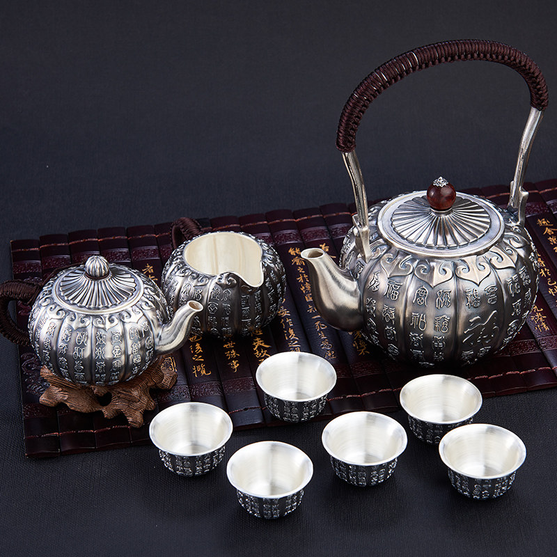 Shunqin Silver Tower 999 foot silver fine ancient teapot set Baifu Sterling silver investment collection gift gift to the leaders and elders
