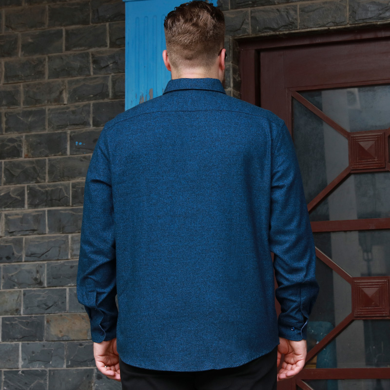 Yum Fox large size square collar long sleeve shirt Men's business casual top Fat guy fat plus size shirt Fat loose