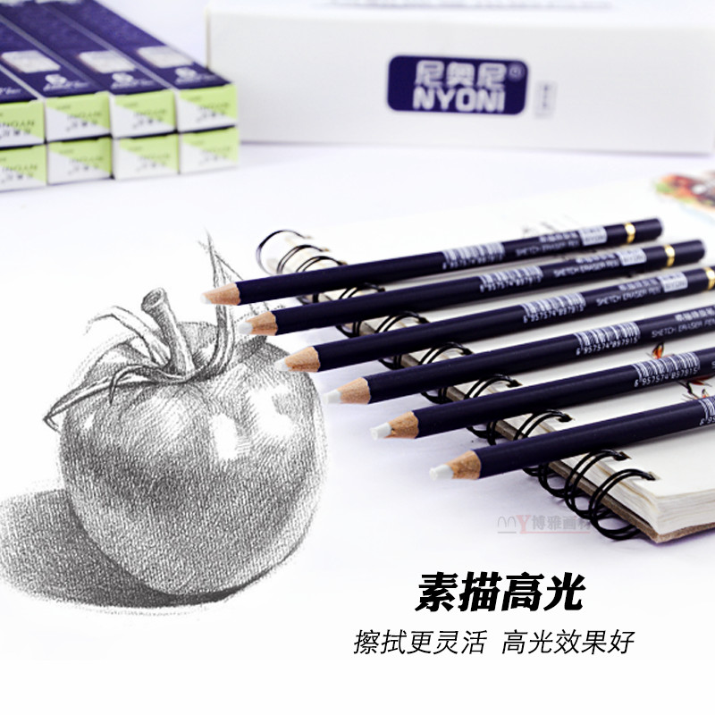 Nioni eraser pen student sketch painting special elephant leather brush pen shape white carbon pen fine art raw white sketching pen