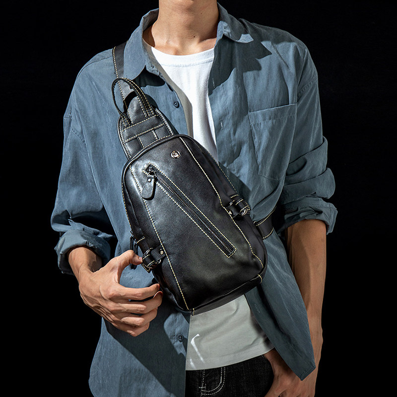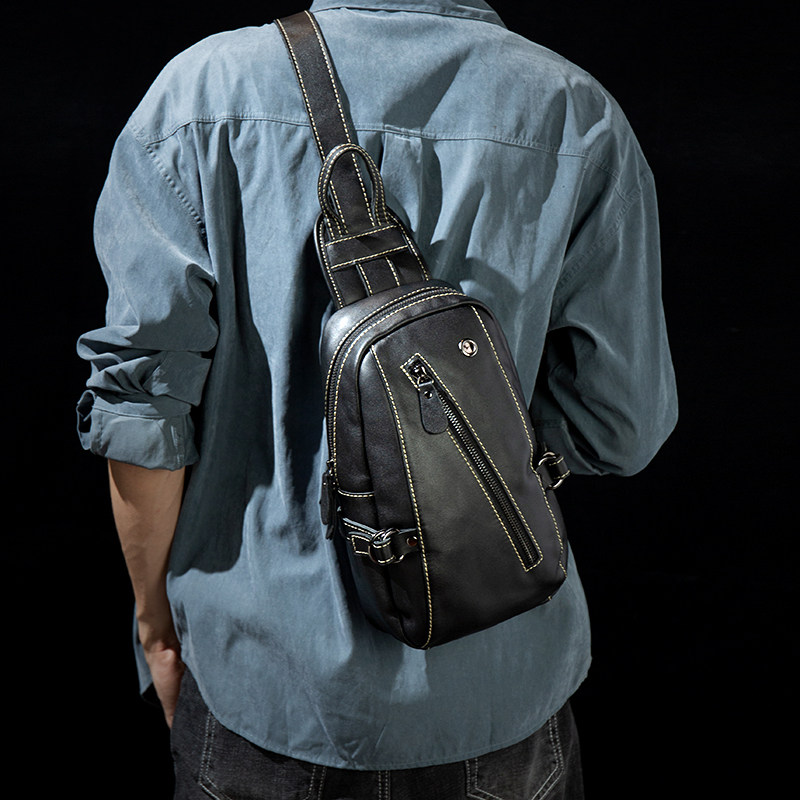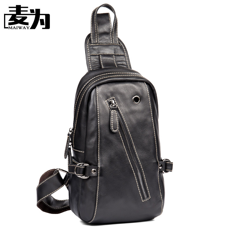 Maiwei street trend leather chest bag outdoor shoulder bag casual top layer cowhide chest bag men's all-match diagonal bag