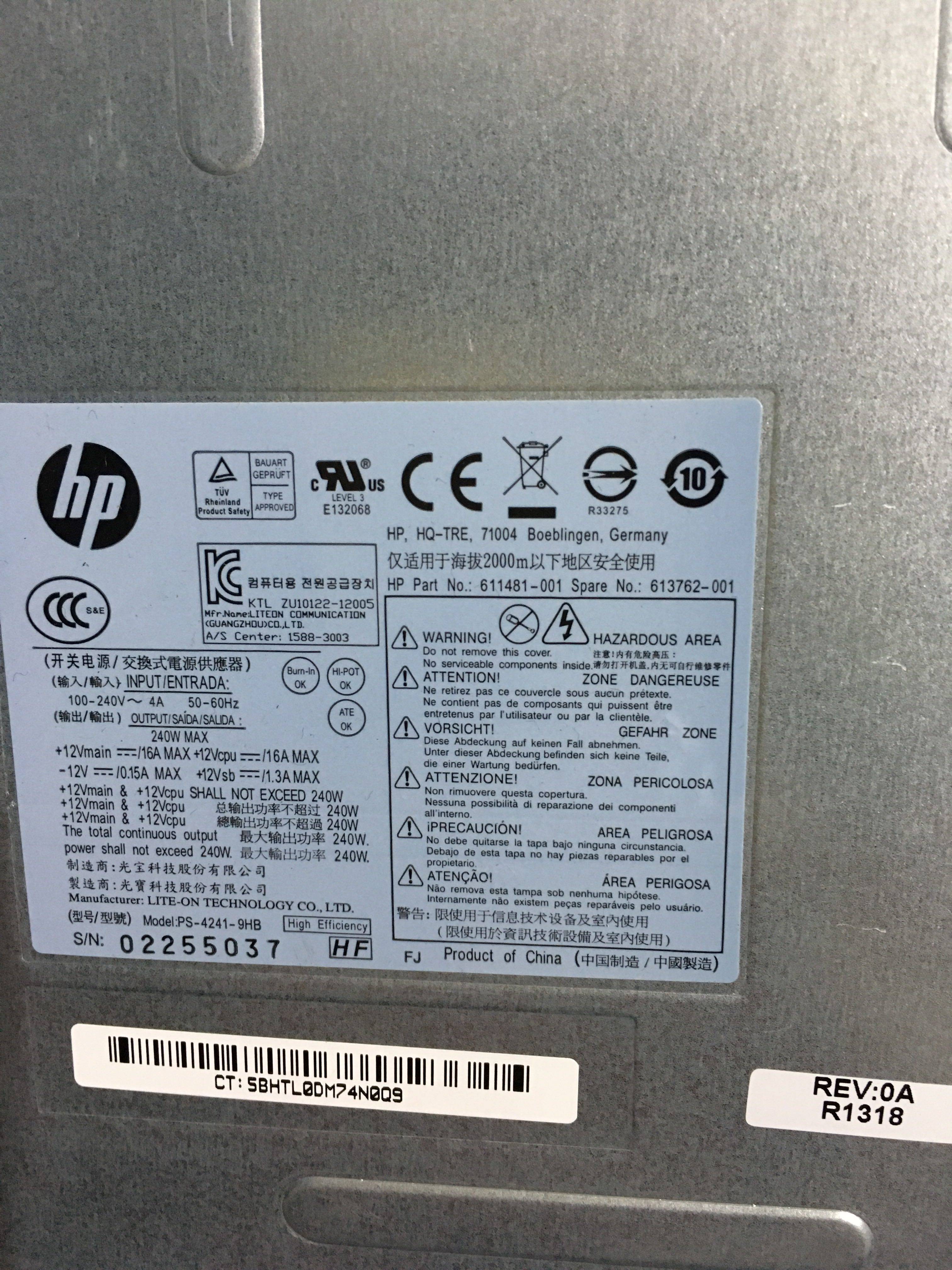 HP 8300 8100 8200 8200 PCs Small Host Shell Power 611481-001 613762-001