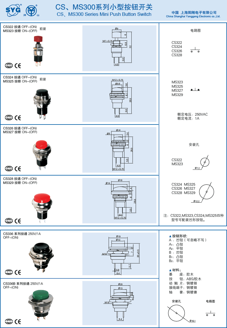 Shanghai masculine CS326 push-through OFF-(ON) high-quality reset button