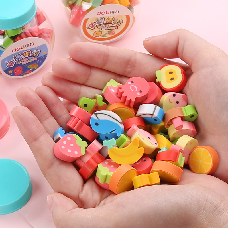 Deli mini cute cartoon like eraser for children and primary school students special wipe clean without leaving marks Creative fruit animal like small rubber bottle Vegetable shape detritus-free kindergarten toy