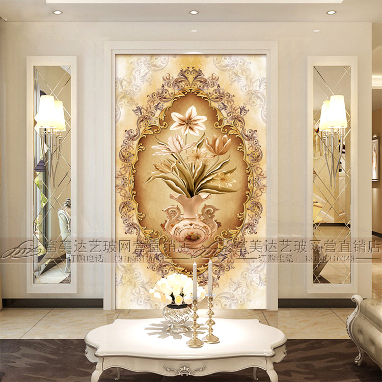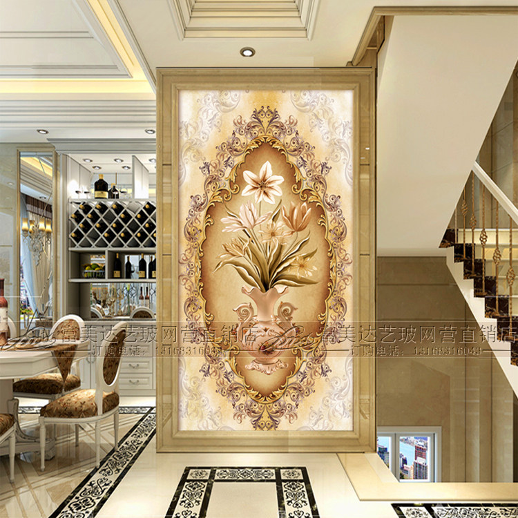 Art Glass Eurostyle Genguan Background Wall Partition Double Sided Living Room Decoration Screen Steel-tempered Process Glass Custom