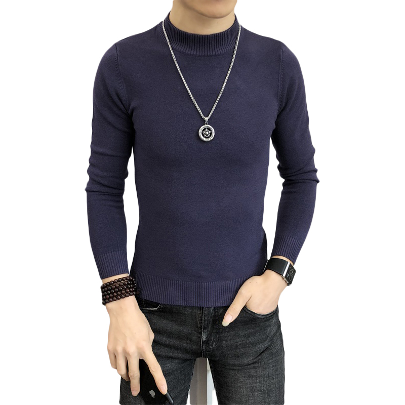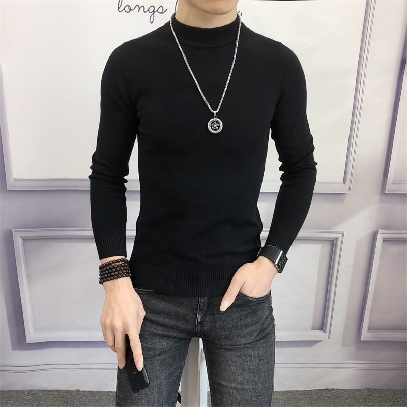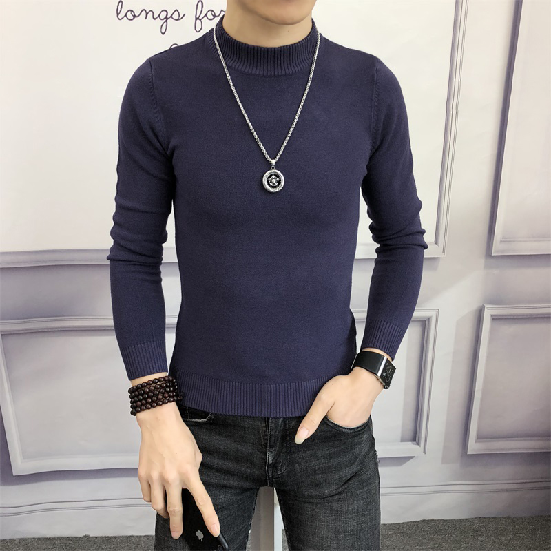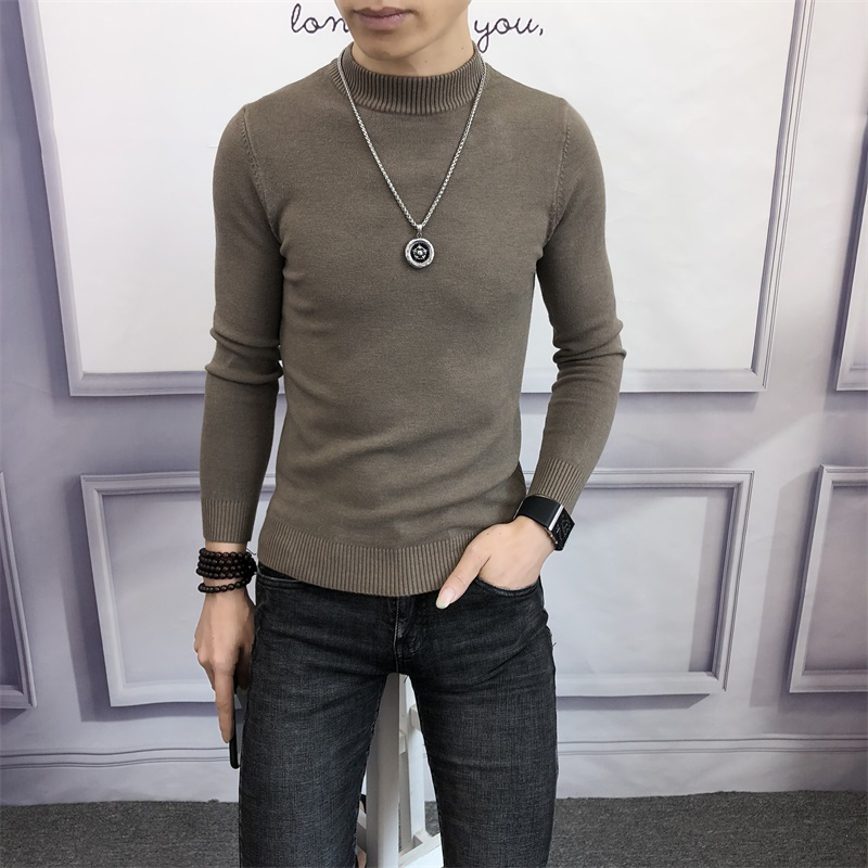 Autumn and winter slim long sleeve Middle half high collar men sweater young students Korean solid color sanitary clothing knitted base shirt tide