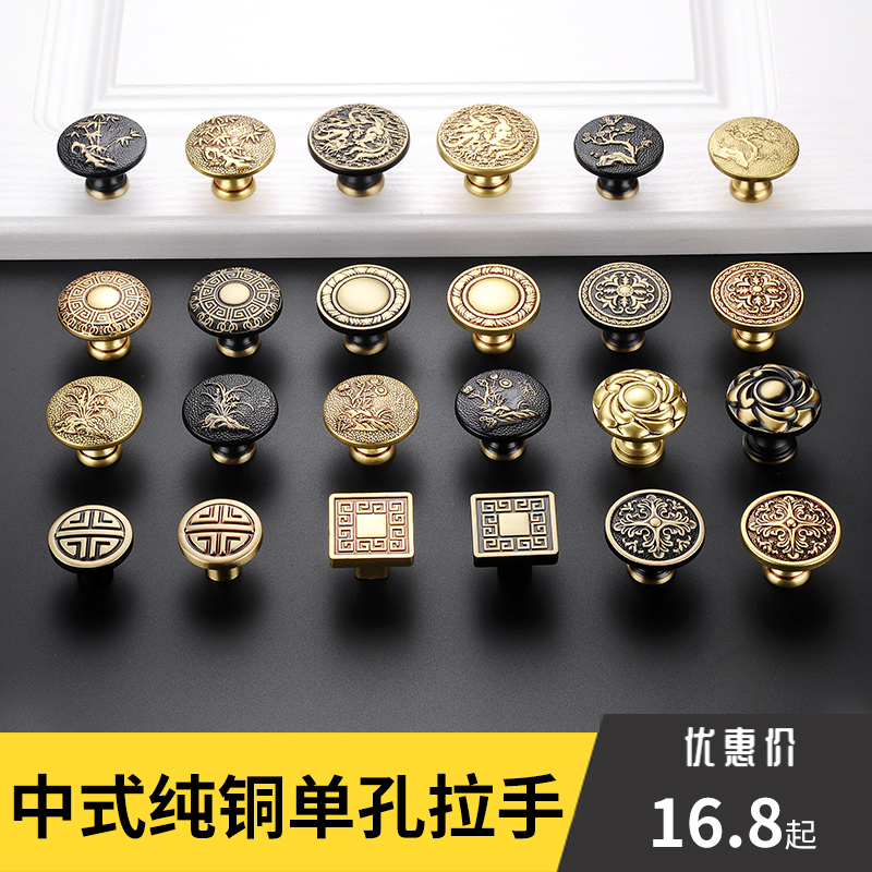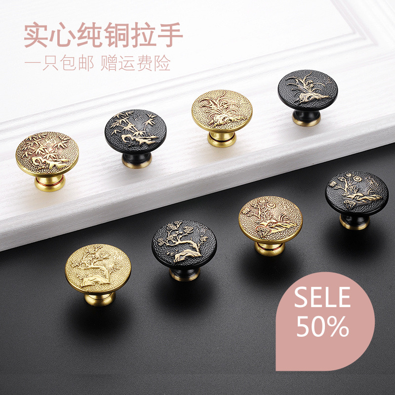 Pure Copper Single Hole Handle All Copper Drawer Home Innate Round Handle New Chinese Overall Cabinet Wardrobe Door Handle