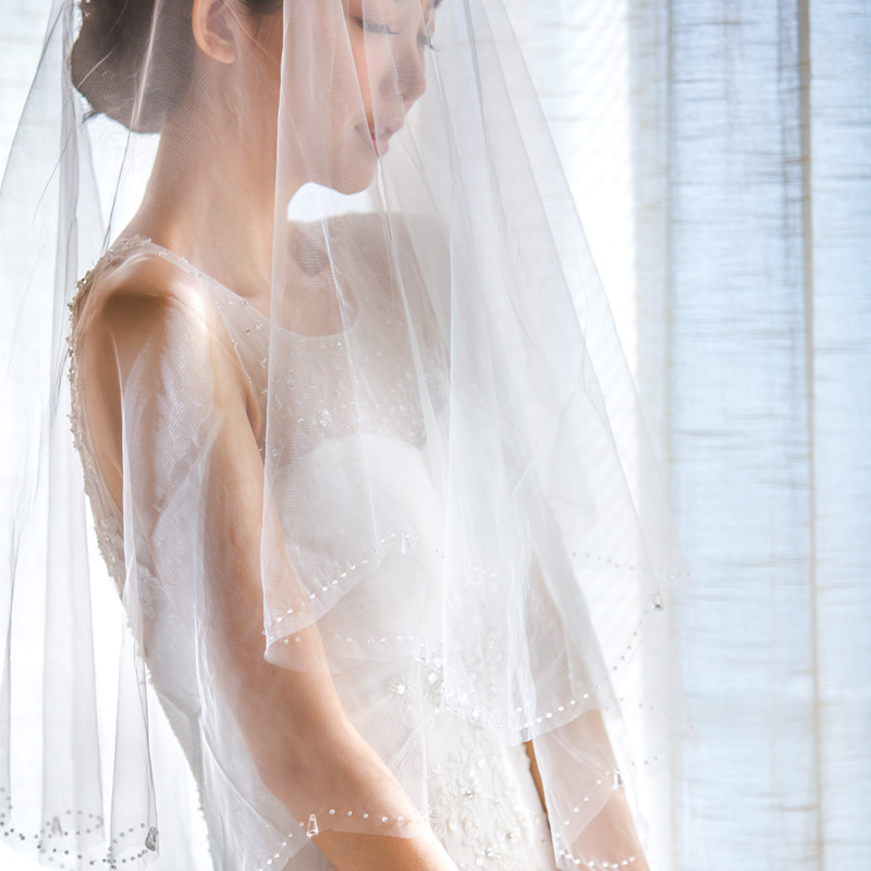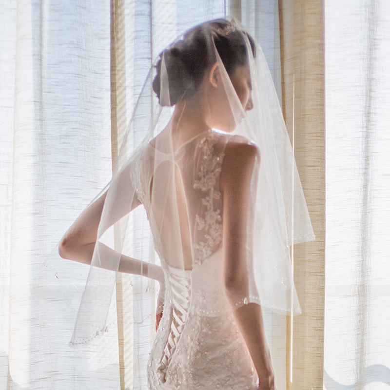 Veil wedding dress new Korean princess simple single-layer handmade beaded crystal small fresh cover veil short section