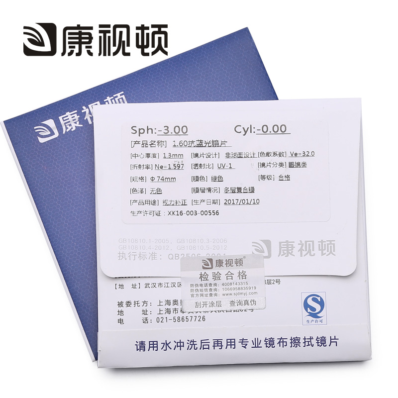 Convision 1 60 anti-blue light aspheric 1 67 anti-blue lens * 2 pieces free 150 yuan inner frame optional
