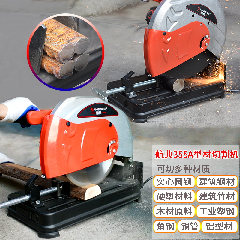 Hangdian 355A profile cutting machine High-power steel grinding wheel saw multi-function corner cutting machine Household small desktop