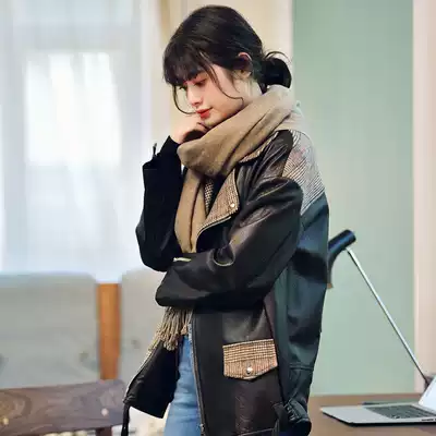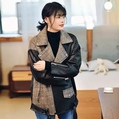 Don't show custom large size female fat mm new jacket oversize long-sleeved sheepskin leather motorcycle leather tide