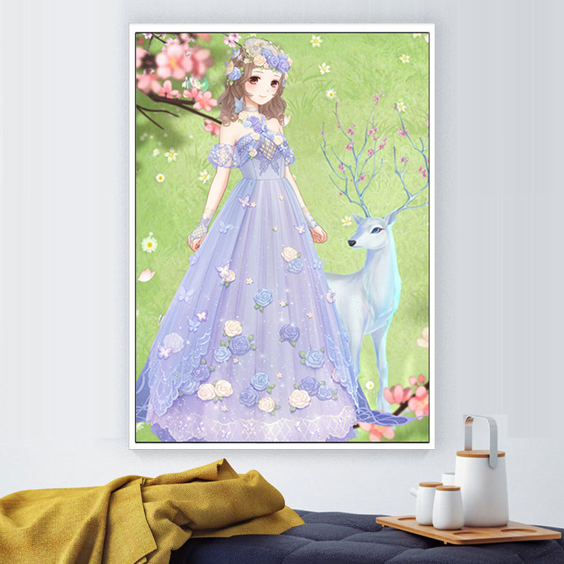 2021 new cross stitch printing miracle warm warm girl line embroidered new minimalist modern living room small bedroom