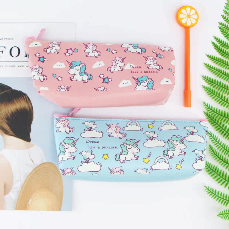 South Korean girl heart unicorn canvas pen bag student small fresh cute cartoon stationery bag makeup bag