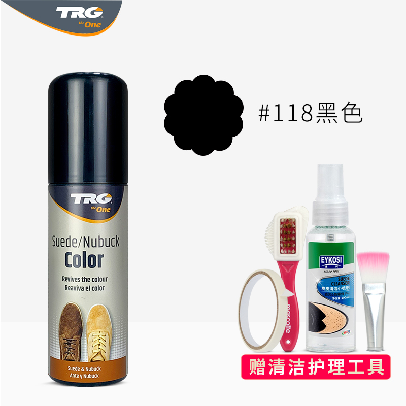 #118 black (free suede cleaner, suede brush, brush, masking paper) #100 colorless (free suede cleaner, suede brush, brush, masking paper) #134 olive green (