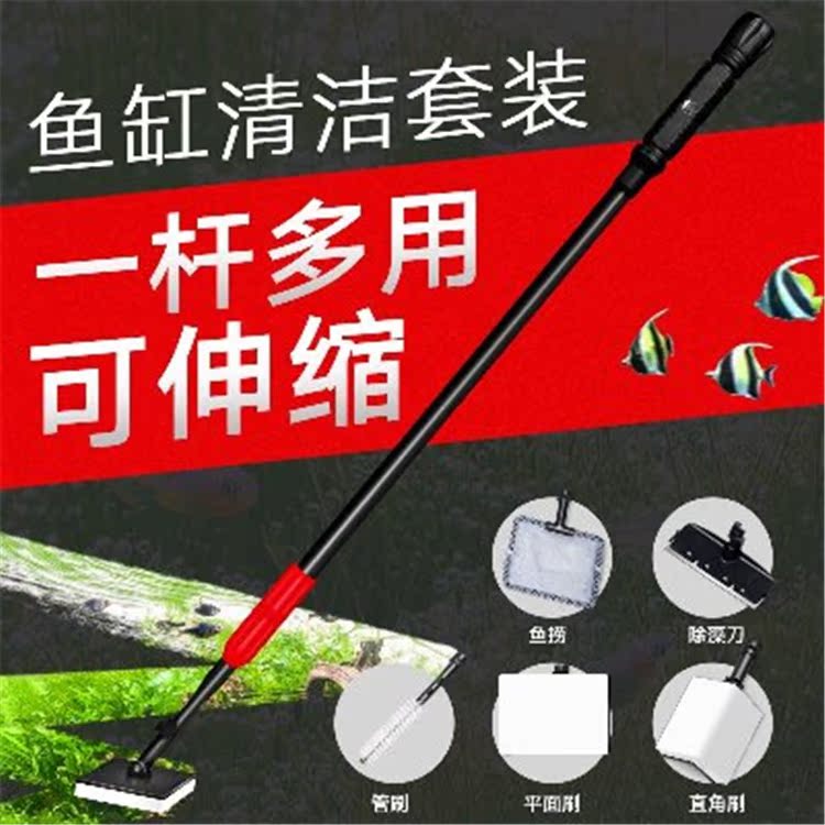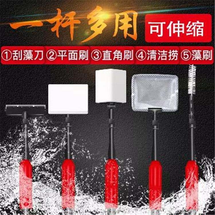 Old fisherman five-in-one six-in-one fish tank brush scraper algae knife fish tank aquarium wipe long handle cleaning set fishing brush