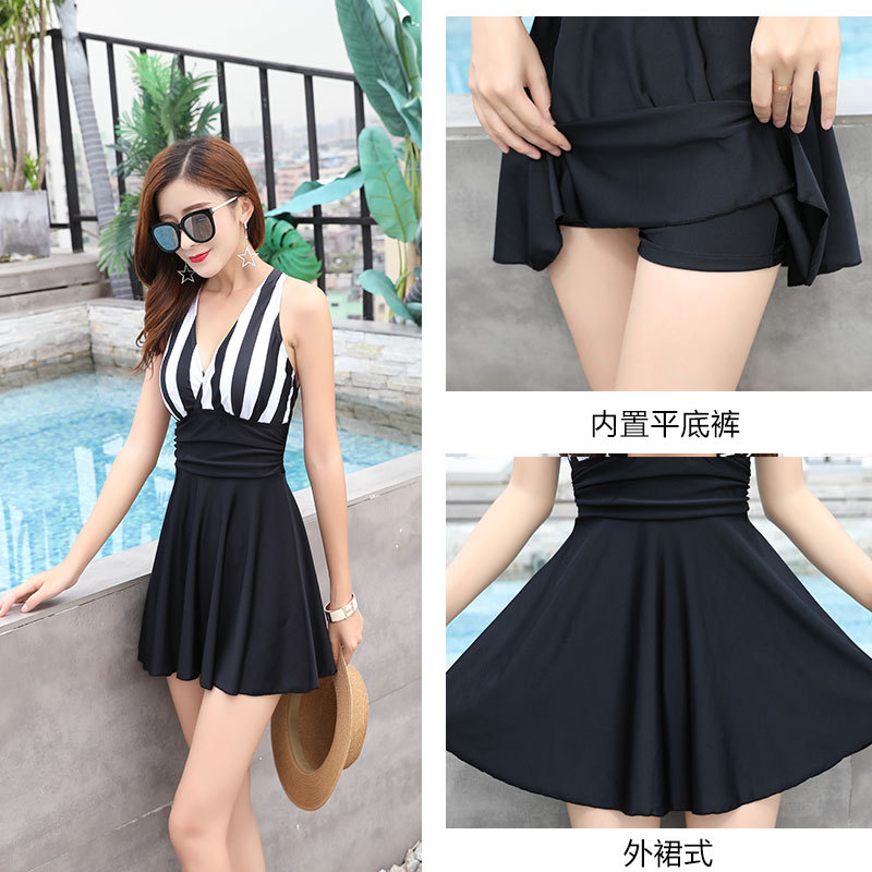 Swimsuit women's one-piece skirt-style belly-covering gathered conservative small fresh student wear Korean large size sunscreen sexy swimsuit