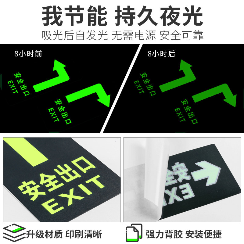 Safety Exit Signs Luminated Floor Sticker Placard Stairs Evacuation Channel Fire Marking Sign Fluorescent Landmarks Emergency Emergency Escape Spontaneous Light Free of electric care Step ground slip warning signs