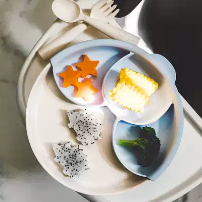 Pink bread plate White cereal bowl White monkey bread plate Salmon color bread plate Salmon color snack bowl Silicone partition plate Remarks Color baby cup set Blue baby cup set Pink white fork and spoon combination