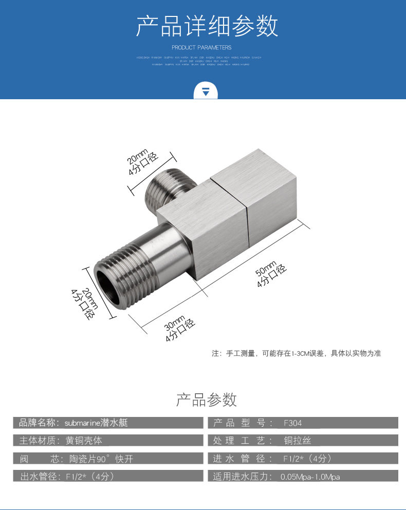 Submarine all-copper thickened angle valve cold water heater triangle valve toilet European standard eight-character water stop valve switch valve