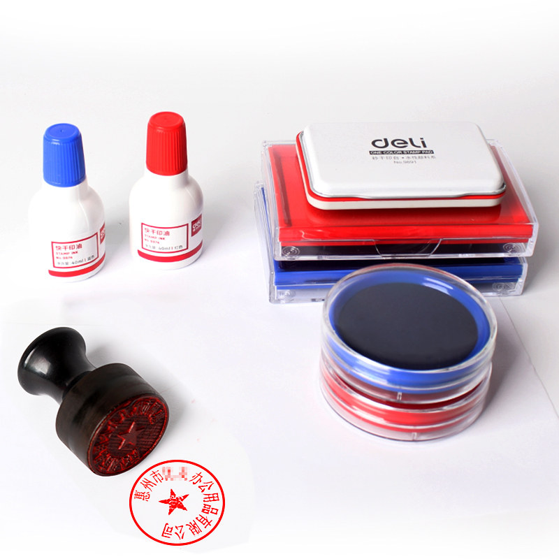 Deli ink pad Red large round blue Oily second dry Indonesian seal mud stamp financial press hand red